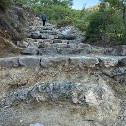 Auf dem großen Parkplatz ist nichts los als wir ankommen. Der Eintrittspreis ist dieses Mal für alle Besucher gleich. 1,20 Euro ungefähr bezahlen wir um zu dem sagenumworbenen Ort zu gelangen. Der Weg nach oben hat es in sich. 1000 Höhenmeter geht es über Natursteintreppen nach oben.