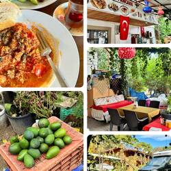 Wir verlassen unseren Schlafplatz in Cirali nicht ohne einen ausgedehnten Spaziergang durch das surreale Landschaftsschutzgebiet mit den abgestellten Schiffen am Strand und Bäumen, die entweder vertrocknet sind oder wo der Blitz eingeschlagen hat. Fahren langsam durch die engen Straßen und schauen uns die kleinen Villen, Tiny Häuser oder Holzbauten mit mehreren Zimmern zum Vermieten im Vorbeifahren an. Über allem liegt ein Ruhe, trotz leiser Töne einiger Windspiele. Ein wenig wie aus der Zeit gefallen, kommt uns die Gegend vor. „Sanfter Tourismus“. Der Ausdruck stimmt irgendwie. Auch morgens sind schon Wanderer unterwegs. Wir frühstücken bei Emine, einer super sympathischen Türkin, die ihren Laden noch auf hat. Überall hängen bemalte Kürbisse. Wir kaufen bei ihr auch Avocados und Orangen. Alles aus eigenem Anbau, erzählt sie uns und will am Schluss noch Fotos machen. Eine Herzensbegegnung! 💚