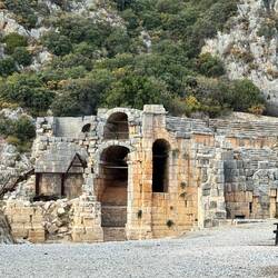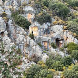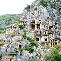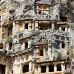 Das antike Myra, einst eine wichtige lykische Stadt, ist heute vor allem als Wirkungsstätte des Nikolaus bekannt. Von der Stadt selber sind nur noch die Gräber zu besichtigen. Es gibt aber kaum noch einen anderen Platz an dem so viele prächtige lykische Felsengräber erhalten blieben als in Myra. Dicht an dicht stehen sie in dem steilen Hang.