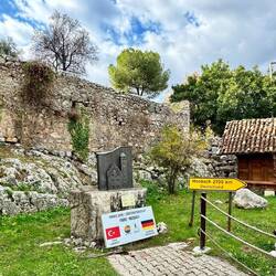 Vorher machen wir einen Zwischenstopp in Finike, einer symphatischer Stadt ohne Tourismus, wie uns Muammer, der Inhaber eines kleinen Ladens, erzählt. Seine Schwiegereltern leben in Flensburg, er spricht gut Deutsch. Hier ist die Landwirtschaft der beste Arbeitgeber. Die Orangen sollen die besten auf der ganzen Welt sein. Finike ist die Partnerstadt von Mosbach in Deutschland, das findet er gut. Muammer begleitet uns zum Einkaufen in die kleinen örtlichen Läden und dolmetscht. Wir kaufen in seiner kleinen Schmuckfabrik einige Mitbrinsel für zuhause. Nach einer hervorragenden Fischsuppe und dem Einkauf von leckeren Orangen verabschieden wir uns und fahren nach Demre und Myra.