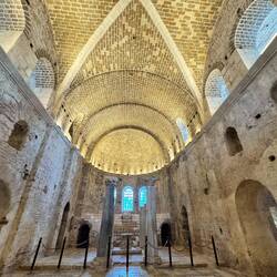 Etwas unterhalb von Myra steht die Basilika des hl. Nikolaus, die in byzantinischer Zeit gebaut, aber danach mehrfach zerstört wurde. Die heutige Kirche wurde von Zar Alexander ll. im 19 Jh. aus Verbundenheit mit dem hl. Nikolaus wieder aufgebaut.