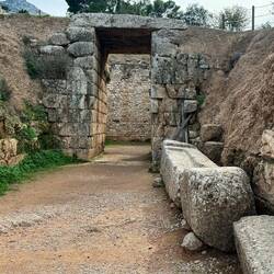 Für uns geht es nach dem Einkauf aber weiter in das antike Mykene. Diese Stadt war seit der Bronzezeit bis etwa 1200 Jahre vor Christus eine der bedeutendsten Städte Griechenlands. Zahlreiche Mythen ranken sich um die antike Stadt mit ihrem weltberühmten Löwentor. Das Löwenpaar über dem Eingang zur inneren Burg zählt zu den frühesten Beispielen europäischer Monumentalplastik. Gleich hinter dem Tor entdeckte Heinrich Schliemann 1876 einen gepflasterten Kreis mit Königsgräbern, aus dem er die Maske des Agamemnon barg.