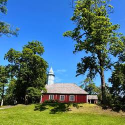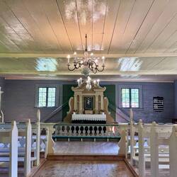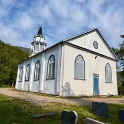 Unterwegs besuchen wir noch die weiße Holzkirche von 1856 in Kistrand. Die Geschichte dazu fand ich interessant, deshalb musste ich dorthin. Liegt auch direkt an der Strecke: