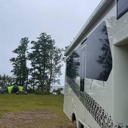 Jetzt stehen wir direkt an der Ostsee und warten dass der Regen aufhört.