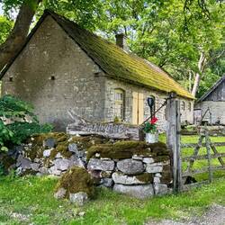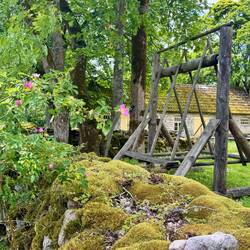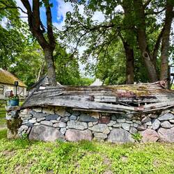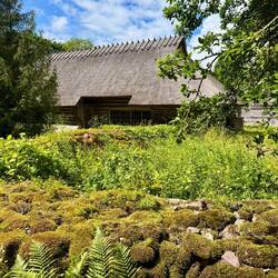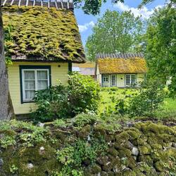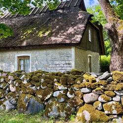 Muhu hat ca. 2000 Einwohner. Die Dörfer verstecken sich zwischen Waldflächen und Feldern. Die Steinhäuser in Koguva sind mit Reet gedeckt und umgeben von einer bemoosten breiten Steinmauer. Mitten im Dorf befindet sich ein Freilichtmuseum, wo man auch in die Häuser hineingehen kann, die originalgetreu, wie in früheren Zeiten üblich, möbliert sind. Auf uns wirkte das gesamte Dorf wie ein großes Museum. So schön das Ganze! Ein Idyll. Einige Häuser sind noch bewohnt. Man wird angehalten die Privatsphäre der Anwohner zu berücksichtigen.