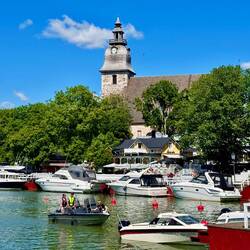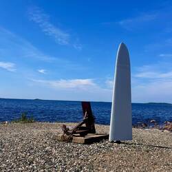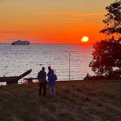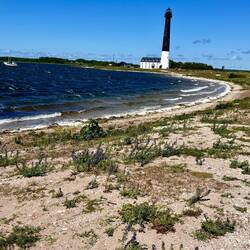 Auf der Landspitze vor dem Turm erinnert ein Mahnmal mit einer frei hängenden Glocke an das Schicksal der Passagiere der Fähre Estonia, die 1994 auf dem Weg von Tallinn nach Stockholm sank. 852 Menschen kamen damals ums Leben, darunter viele Kinder. Auf den Infotafeln steht, dass diese Stelle auf der Landspitze das nächstgelegene Küstenteil zur Fähre war. Wir haben lange dort gestanden und uns später mit dieser Thematik und der bis heute eigentlich ungeklärten Ursache, die zu dem tragischen Unglück führte, beschäftigt.