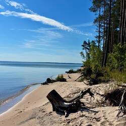 Aber auch wir finden einen schönen, ruhigen Übernachtungsplatz im Wald. Wir laufen noch eine Runde am Strand entlang und genießen die Stille.