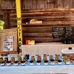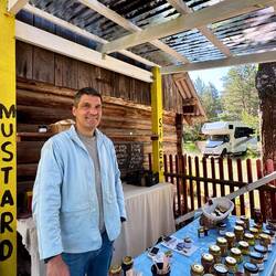 Andreas Witte beschreibt mir die einzelnen Senfsorten, ich kann alles probieren. Sehr interessant und lecker das Ganze. Das Lebenskonzept ist auch spannend. Im Sommer in Estland, im Winter in Norddeutschland. Unsere Favoriten sind der Preiselbeersenf und der süße Senf. 😋