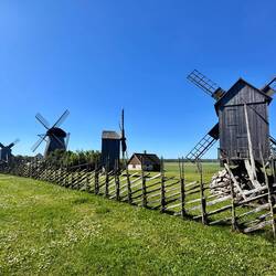 Bevor wir aber auf die nächste Insel hüpfen besuchen wir auf dem Weg zur Fähre noch die Windmühlen von Angla. Wie auf der Schnur aufgereiht stehen sie entlang der Straße in einem Museum und zeugen von alten Zeiten. Ursprünglich hatte jedes Dorf auf Saaremaa einen Mühlenberg, auf dem mehrere Windmühlen standen. Damals waren mehr als 800 Windmühlen in Betrieb. Einzelne Mühlen gibt es auch heute noch in vielen Winkeln der Insel. In Angla ist aber der einzige Berg mit voll funktionstüchtigen Mühlen.