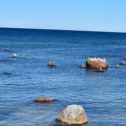 Der Tag beginnt mit einem Bad in der Ostsee. Etwas kalt noch aber herrlich erfrischend. Der Sandstrand ist weich und das Reinlaufen ins Wasser deshalb ein Genuss.