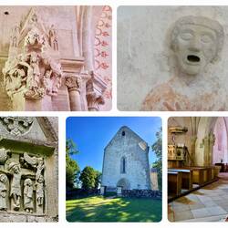 Um die Ecke gebogen, stehen wir vor einer alten kleinen Kirche aus dem 13. Jh., die bekannt ist für ihre Steinfresken in- und außerhalb der Kirche. Sehr spannender Ort.