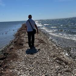 Wir beenden den Tag mit einer Wanderung die titelt: Zu Fuß in die Ostsee - Wanderung auf dem Sääretirp. Vom Parkplatz auf der Halbinsel Kassari führt ein Schotterweg der auf die Landzunge Sääretirp hinausführt, bis sich diese immer schmaler werdend im Meer verliert.