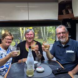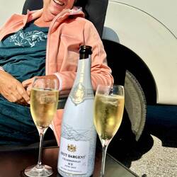 Später gibt‘s noch Zimtschnecken und den obligatorische Schaumpus trinken wir später an unserem Übernachtungsplatz im alten Fährhafen.