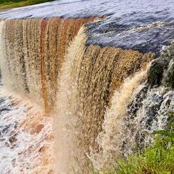 Am Ufer des Flusses Pärnu finden wir einen schönen Platz. Hier ist alles neu gestaltet, eine üppige Blumenwiese erfreut das Auge. Wir sind ganz alleine, später kommt noch ein kleines Wohnmobil aus Tschechien dazu. Ein Rundgang am Ufer entlang bringt uns zu den in 2020 neu angelegten Stromschnellen des Flusses. Auf den Schautafeln ist zu lesen, dass hier vorher eine Talsperre war. Nach dem Abriss wurden Fischlaichgebiete eingerichtet und der Fluss Pärnu für die Fischwanderung geöffnet. Die Stromschnellen sind einzigartig im Baltikum und ideal für Paddling, Rafting und mehr. Hier ist auch der Start und Zielpunkt für Wasserwanderungen. Eine Besonderheit sind die variable Strömung und der große Höhenunterschied.