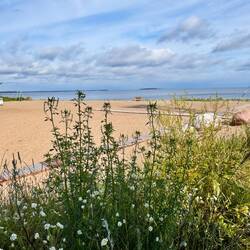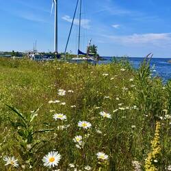 Der Wind hat sich ausgetobt, unserem Morningwalk steht nichts mehr im Weg! Wir laufen hinunter zum Steinstrand und genießen die blühende Natur.