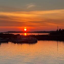 Hier am Vatunki Fishing Harbour in Kuivaniemi erleben wir traumhafte Sonnenuntergänge. Allerdings muss man dafür lange aufbleiben. So kurz vor Mitternacht verabschiedet sich die Sonne als glutroter Ball und gegen 3.30 Uhr ist sie schon wieder bereit uns den Tag zu erhellen. Eigentlich ist es aber die ganze Zeit hell. Wir können trotzdem sehr gut schlafen.