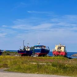 Die drei größten estnischen Inseln sind an der Westküste Estlands zu finden. Alle drei sind dünn besiedelt und jede hat ihren eigenen Charakter. Wir sind gespannt ob wir das auch so empfinden und ob die Fähren uns überallhin mitnehmen. Zumindest die erste Fährverbindung von Virtsu nach Kuivastu auf die kleinste Insel Muhu hat schon mal geklappt. Mein Fahrer hat die Fahrkarte vorher online gebucht. Am Fährhafen an der Schranke wird das Nummernschild gescannt und die Schranke öffnet sich. Die Überfahrt dauert ca. eine halbe Stunde.