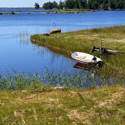 Der See ist doppelt so groß wie der Bodensee, überhaupt nicht touristisch vermarktet. Unzählige Buchten gewähren stets neue Aussichten auf den glasklaren See. Wer alle 3000 Inseln im See besuchen will, hat einiges zu tun.