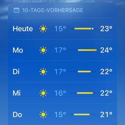 Unser Tag hat heute 24 Stunden Sonne. Auf der Wetterkarte ist das schriftlich festgehalten. Da können wir ja einiges erledigen. 🥳