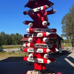 Damals stand nur ein Schild dort mit dem Hinweis, POLARKREIS. Jetzt zieht sich die Artic-Circle-Line durch ein komplettes Weihnachtsdorf mit gnadenloser Vermarktung. Wir verstehen, dass natürlich der Weihnachtsmann mit seinen fleißigen Helferlein das finnische Rovaniemi als seine Heimat ansieht und somit hier sein Werkstattdorf hat. Dementsprechend gibt es ja auch das Postamt für die Weihnachtspost damit die Wünsche der kleinen und großen Kinder auch beim Weihnachtsmann ankommen.