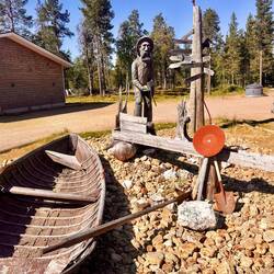Also auf geht’s. Wir besuchen zum Morgengebet in Sodankylä die älteste Holzkirche Lapplands. Sie stammt aus dem Jahr 1689. Diese alte rotbraune Kirche steht auf einem weitläufigen Friedhof am Fluss. Sehr idyllisch! Das robuste und schlichte, in seinem ursprünglichen Zustand und damit authentisch gebliebene Gotteshaus aus nordischer Kiefer stammt aus der Zeit als die Sami mit dem Christentum erstmals in Berührung kamen. So wie der Same in der Bronzeskulptur am Wegesrand in der Nähe sein Rentier bändigt, haben wohl auch die damaligen Missionare die Ureinwohner mit festem Griff auf den richtigen Weg geführt. 🙃