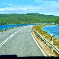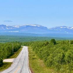 Langsam ändert sich die Landschaft. Die hohen Bäume verschwinden, Birken, Sand und Wollgras bestimmen das Bild. Pure Natur, keine große Bebauung, das tut dem Auge gut. Lappland ist flach, die Straße verläuft schnurgerade bis zur Grenze. Wir tanken vorher nochmal und kaufen ein. Der Diesel ist in Norwegen um einiges teurer.