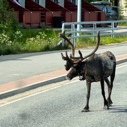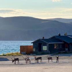 Die Nordnorwegische Stadt Karasjok, die als Tor zu Lappland gilt, ist eines der wichtigsten Zentren der Samen, der Ureinwohner der drei Nordländer. Von den 2000 Einwohnern sind 85% der Bevölkerung Samen. Wir haben eine Kaffeepause genutzt um uns den großen Themenpark Sápmi anzusehen. Es zeigt die Kultur und Lebensweise dieser Volksgruppe aus früheren Zeiten, die Hütten und Zelte in denen sie gelebt haben. In den größten Gebäude tagt Sametinget, das norwegische Samenparlament. Es besteht aus 39 Abgeordneten und wurde 1989 ins Leben gerufen, damit die Belange der Minderheit bei der Regierung und den Behörden Gehör finden.