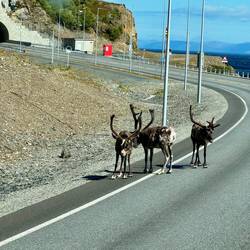 Irgendwo unterwegs auf einem Platz hat uns ein Ehepaar erzählt, dass sie Richtung Schweden abbiegen, die Strecke zum Nordkap wäre zu viel zu fahren für zu wenig was am Ende geboten würde! Natürlich muss das im Endeffekt jeder für sich selbst entscheiden. Ich kann nur sagen: wir empfinden den Weg zum Ziel unglaublich abwechslungsreich und spannend. Und auch die Tunnel sind jetzt sehr gut befahrbar. Und ab und zu lassen sich Buckelwale im Fjord sehen. Die Möwen kreischen dann ganz aufgeregt zu Hunderten in deren Nähe. Auch ich kreische aufgeregt, kriege ich doch kein Foto hin. 😅🥵