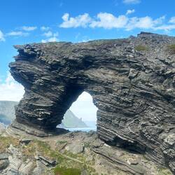 Im kleinen, beschaulichen Fischerort Skarsvåg begeben wir uns auf den Wanderweg, bergauf und wieder bergab in den Fjord zu einem außergewöhnlichen Felsen, der Kirkeporten (Kirchenpforte) genannt wird.