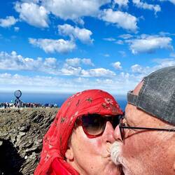 Wir lassen uns auf dem Plateau mit der Kugel fotografieren, gehen frühstücken und später nochmal eine Runde. Der Wind hat aufgehört, die Sonne scheint kräftiger. Es ist T-Shirt Wetter am Nordkap. Die Wettervorhersage, die wir beobachtet und abgewartet haben, hat gestimmt.