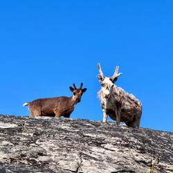 Das genannte Dorf blickt auf eine lange Goldgräbertradition zurück. Auf der Suche nach dem wertvollen Erz schürften hier in den 1870er- Jahren rund 600 Glücksritter um die Wette. Wie sie lebten und litten, welche Erfolge sie erzielten und welche Ausrüstung zum Goldwaschen nötig ist, zeigt das Museum. Wir laufen durch den kleinen, sehr heruntergekommenen Ort, der wieder an eine Westernfilmkulisse erinnert, schauen uns alles an. Mit Goldwaschen ist aber nichts. Die beiden Haus-Rentiere auf dem Parkplatz und einige skurrile Souvenirläden waren ganz witzig anzusehen.