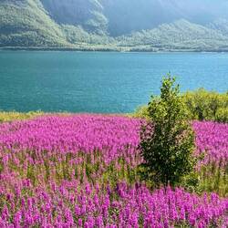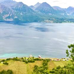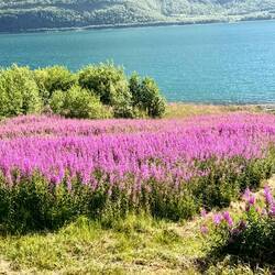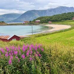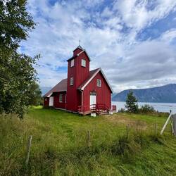 Wir starten zum Inselhopping mal mit Fähre mal über Brücken, wandern am Gasfjord und tauchen am Strand von Ytre Elgsnes die Füße ins kalte Nordmeer. Vorbei an romantischen Kapellen genießen wir in einem Mix aus Sonne und Wolken, unterbrochen von dem ein oder anderen Regenschauer den Trip auf diese Inselgruppe.
