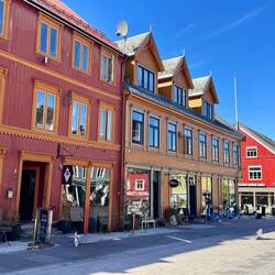 Etwas außerhalb der Stadt und eingebettet in die Fjordlandschaft liegt das Freilichtmuseum. Es gehört seit 1985 zum UNESCO-Welterbe.