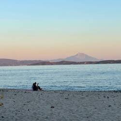 Nach dem langen Tag in der Großstadt zieht es uns doch nochmal ans Meer. Zum letzten Mal für diese Reise an einem griechischen Strand.