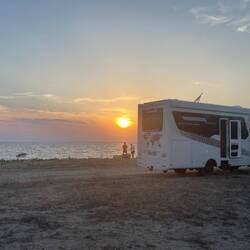 Heute Morgen aufgewacht am langen Sandstrand in der Türkei. Schlafen werden wir am Strand des Thrakischen Meeres, irgendwo im Nirgendwo hinter Alexandroupoli.