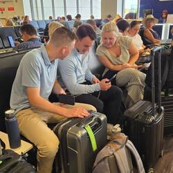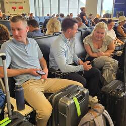 @Logan for our 4:30 to Madrid - Wow, this is a big Airport Madrid is. Air Iberia was an awful experience,a small tight plane, but at least they woke us at 5AM for a roast beef sandwich.
