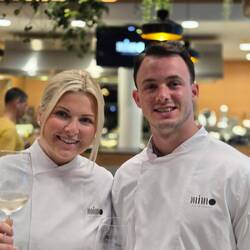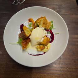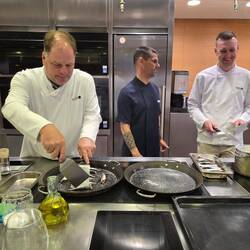 Great time cooking with chef Enecko. Salad with smoked raspberry dressing, mushrooms/poached egg with fresh truffle, young Lamb, potatoes, asparagus, and anchovies with garlic sauce all finished withLæs mere