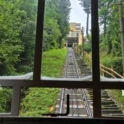 We walked along the concha beach on a misty day to Monte Igueldo. Known for its historic funicular railway--one of the oldest in the Basque Country-and its amusement park. Sorry, but our review isLæs mere