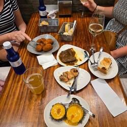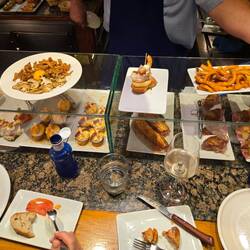 We ate our way through this fun city. Every bar has a few standards, but often are known for something special. We ate from the sky, land, and sea and enjoyed almost all of them. Seared pig, jamon,Læs mere