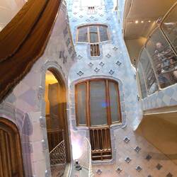 Like everything Gaudí designed, Casa Batlló is only identifiable as Modernisme in the broadest sense. The ground floor, in particular, has unusual tracery, irregular oval windows and flowingLæs mere