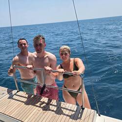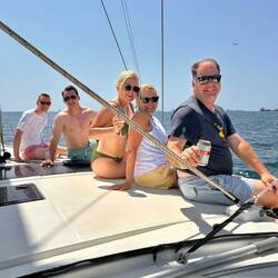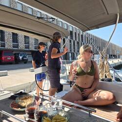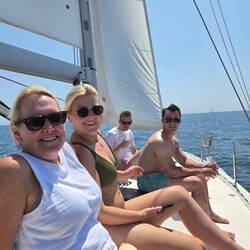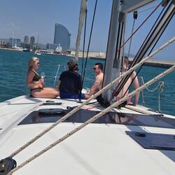 Fantastic 3 hr trip with Captain Victoria and Frederick both by motor and sail. We sailed around the port of Barcelona with a warm breeze. No tour is complete without wine, beer, and refreshmentsLæs mere