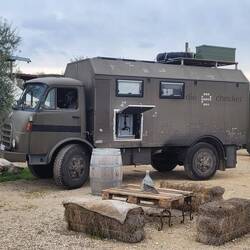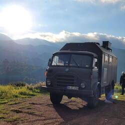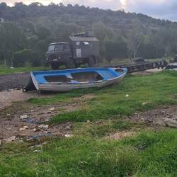 Der Rückweg durch Bergdörfer auf der anderen Seite klappt problemlos. Wir fahren die Peloponnes Halbinsel wieder hoch und zurück über die Rio-Andirrio-Brücke. Unser Ziel ist Igoumenitsa, dort haben wir eine Fähre nach Italien gebucht. Der Weg führt uns am Ambrakischen Golf vorbei und schließlich durch den Aktio-Preveza-Tunnel unter ihn hindurch. Weiter an der Küste entlang genießen wir hier noch einmal tolle Ausblicke, bevor wir die letzten zwei Tage in der Bucht von Plataria verbringen. Wie es der Zufall will, ist zur selben Zeit ein anderer Steyr 680 Fahrer in Igoumenitsa angekommen. Olli und Rob schreiben sich und wir verabreden uns prompt für den nächsten Tag. Als Olli und Simone bei uns in Plataria ankommen, hören wir zum ersten Mal unseren Steyr Sound von einem anderen Fahrzeug, wie lustig. Es folgt ein netter Abend in dem einzig noch offenen Restaurant. Am nächsten Morgen tauschen wir kurz die Fahrzeuge, damit die beiden einmal hören können, ob unser Fahrerhaus weniger dröhnt. Wir haben an einigen Stellen ausgiebiger gedämmt, ursprünglich wegen unserer Hündin, da ja geplant war, dass sie mitfährt.