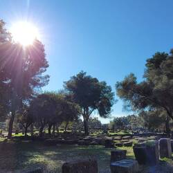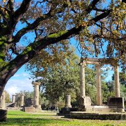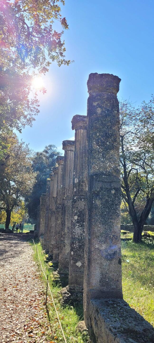 Auf der Peloponnes Halbinsel gibt es viele bekannte und bedeutende Orte, aber allzulange wollen wir hier nicht bleiben. Wir entscheiden uns auf jeden Fall zur alten Stadt Olympia zu fahren. So bekannt das einstige Heiligtum heute aufgrund der Olympischen Spiele ist, erst 1829 wurde die antike Stätte von Franzosen entdeckt. Denn die Überreste waren unter einer bis zu fünf Meter hohen Sandschicht versteckt. Wie viele andere wurde auch diese Stätte im 6. Jhd. n. Chr. maßgeblich durch Erdbeben zerstört, nachdem um 426 n. Chr. bereits die Schließung und Zerstörung heidnischer Anlagen angeordnet wurde.