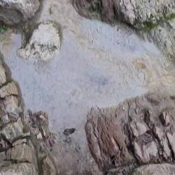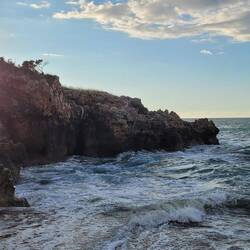 Wir kommen morgens im Hafen von Brindisi an und fahren erst einmal ein Stück die Küste hoch. Genau dort wo wir Pause machen, ist zufällig eine Ausgrabungsstätte, der Archäologische Park von Egnazia, der allerdings zu hat. Direkt neben uns an der Küste sehen wir in den Stein gehauene alte Fischbecken aus der Römerzeit, die einst zur Salzgewinnung und Fischzucht dienten.