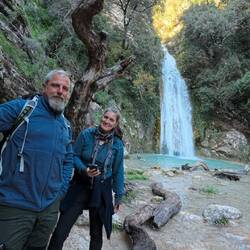 Wir fahren in die Berge, der Weg führt uns irgendwann durch ein kleines Bergdorf. Hier wird die Straße immer enger und an einer Stelle denken wir, dass wir hier nicht durch passen. Zurück ist allerdings auch keine Option. Rob schafft es aber unseren Dusty durch die engste Stelle durchzumanövrieren. Puh... geschafft. Anstatt zu dem rausgesuchten Parkplatz zu fahren, folgen wir spontan dem Schild zu den Wasserfällen. Die Straße geht in einer ziemlich schmalen und steilen Serpentine immer weiter hinunter. Die Stimmung ist ziemlich angespannt. Die Bremsen am Limit. Hoffentlich kommen wir überall durch und können überhaupt wieder irgendwo drehen? Zumindest gab es keine Hinweisschilder, dass der Weg für große Fahrzeuge nicht geeignet ist, aber darauf konnten wir uns bisher in keinem der Länder wirklich verlassen. Auf halbem Weg nach unten gibt es Gott sei Dank eine Parkmöglichkeit für uns. Diese nutzen wir natürlich und gehen die restliche Straße zu Fuß hinunter. Unten angekommen führt eine Brücke über den Fluss Neda, bevor ein schmaler abwechslungsreicher Wanderpfad zu den Wasserfällen führt. Wir haben nur mit einem Wasserfall gerechnet, der zweite beeindruckt mit seiner Höhe von über 20m umso mehr! Was für ein tolles Naturspektakel. Genau mein Geschmack. Aber Rob gefällt es Gott sei Dank auch. Da wir erst spät wieder auf halbem Weg zurück an unserem Parkplatz sind, entscheiden wir uns, die Serpentine erst am nächsten Tag wieder hochzufahren...Read more