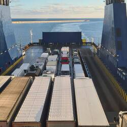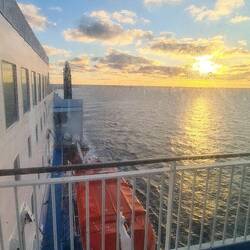 Die GNV Majestic Fähre ist im Vergleich zu den letzten richtig groß und modern. Wir haben kurzfristig auf die Fähre fünf Tage früher umgebucht und haben anstelle einer Doppelkabine nun eine Dreibett-Suite mit Blick ganz vorne raus bekommen... wow!