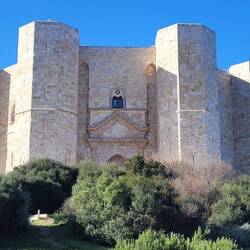 Ganz in der Nähe liegt das Castel del Monte. Ein Schloss aus dem 13. Jahrhundert mit acht oktogonalen Türmen, das wir uns am nächsten Tag bei Sonnenschein anschauen.