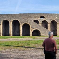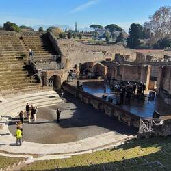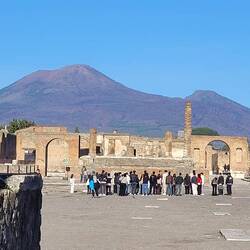 Bevor wir uns über die Feiertage in die Toskana zurückziehen, wollen wir uns noch Pompeji anschauen. Eine der wohl bekanntesten Ausgrabungsstätten. Die Stadt wurde im 7. Jhd. v. Chr. gegründet und bereits im Jahr 62 n. Chr. teilweise durch Erdbeben zerstört. Der Wiederaufbau war noch nicht abgeschlossen, als der Vesuv 79 n. Chr. ausbrach und Pompeji unter einer 6 Meter hohen Schicht aus Asche und Bimsstein begrub. Obwohl bereits 1592 zufällig Wände der Stadt entdeckt wurden, begannen erst 1748 erste Ausgrabungen, die bis heute andauern. Heute sind 2/3 der Stadt ausgegraben, wobei die Instandhaltung solche Unsummen verschlingt, das es wohl nie vollständig freigelegt werden wird.