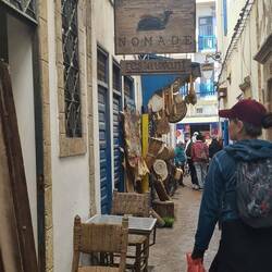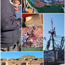 Die nächste große Stadt an der Küste ist Safi, hier hat es letzten Monat heftige Überschwemmungen mit Toten gegeben. Auch wenn die Küstenstraße wieder befahrbar sein soll, wir entscheiden uns zunächst über die Autobahn und dann Landstraße weiter Richtung Süden zu fahren. Dabei wird es hügelig und wir kommen durch einige Ortschaften wie Talmest und Birkouate an der N1, in denen man das tägliche Leben beobachten kann. Hier spielt sich viel mehr draußen und eben vorallem an der Straße ab. Den Tag über regnet es heftig und es dauert ein Weilchen, eh wir einen passenden Campingplatz in Ounagha finden. Auch wenn wir ein Stück weg von der Küste stehen, so können wir am nächsten Tag mit zwei anderen Campern, Andrea und Jürgen, die wir hier zufällig wiedertreffen, mit dem Taxi in die Hafenstadt Essaouira. An der Lagune hatten wir direkt neben ihnen gestanden. Die Medina (Altstadt) von Essaouira ist von Befestigungsmauern aus dem 18. Jahrhundert umgeben. Wir schauen uns zunächst den Hafen an und bekommen hier von einem älteren ehemaligen Fischer prompt eine Führung, in der er viele Details über den Fischfang preisgibt. Danach geht es in die Altstadt und ihre unzähligen Gassen, die teilweise immer enger werden. Wir fühlen uns irgendwann wie in einem Labyrinth. In einem Hof liegt am Ende ganz unscheinbar ein kleines modernes Café Restaurant, das uns anspricht. Hier 'versteckt' sich im Innenhof ein über 250 Jahre alter Ombu Baum, auch Elefantenbaum genannt, der der älteste Marokkos sein soll. Eine tolle Atmosphäre mit einem außergewöhnlich leckerem Mittagsmenü. Zum Ende hin wird die Altstadt immer voller und so gönnen wir uns noch eine kleine Pause am Meer, bevor es mit dem Taxi wieder zurückgeht.Read more
