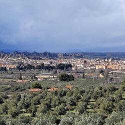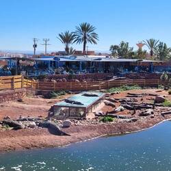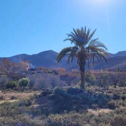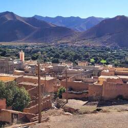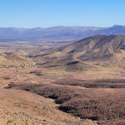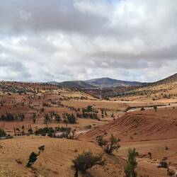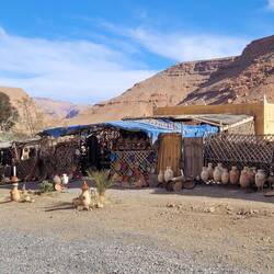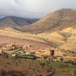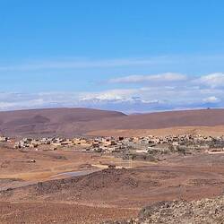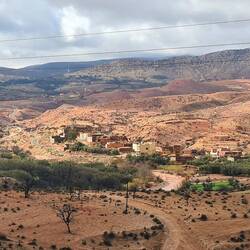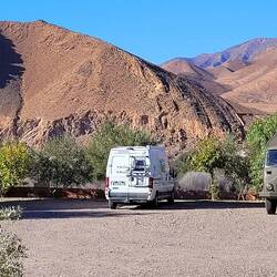 Auf dem Weg nach Quarzazate fahren wir von Agadir aus lange parallel zum Hohen Atlas Gebirge mit Blick auf die schneebedeckten Gipfel. Unser Tagesziel ist das rund 190km entfernte Taliouine, das auf 1200m liegt. Hier haben wir vom Platz aus eine tolle Bergkulisse. Die Kleinstadt Taliouini wird auch Safran-Hauptstadt genannt. Safran ist hier die wichtigste Einnahmequelle für rund 400 lokale Familien, aber nein, wir haben keinen gekauft. Dafür gibt's abends in dem kleinen Restaurant des Platzes Kürbissuppe und Gemüse-Taijine.